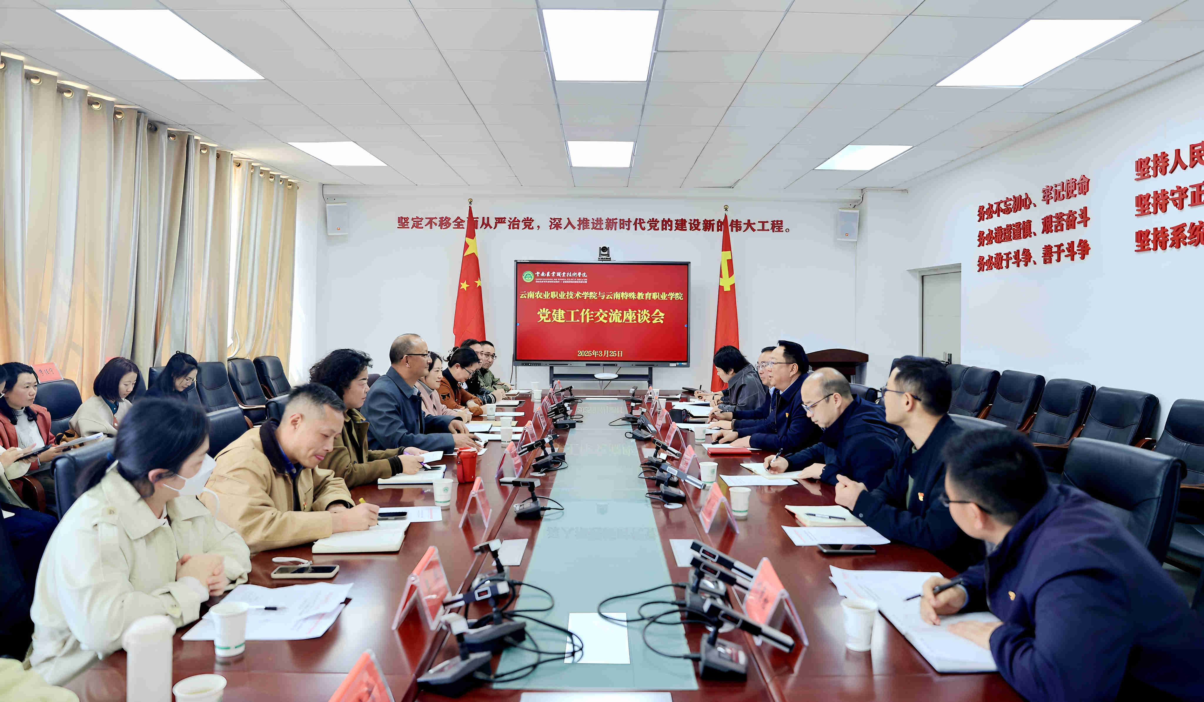3月25日,云南特殊教育职业学院党委书记孙继先率本校办公室、组织部、校团委等部门同志一行15人到best365进行考察调研。best365党委书记文俊、党委副书记杨波及办公室、组织部、农学与园艺技术学院、畜牧兽医学院相关人员参与调研。