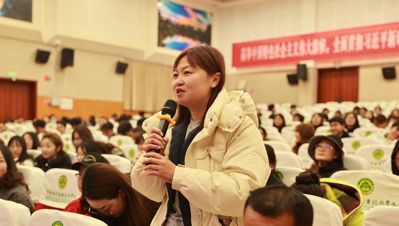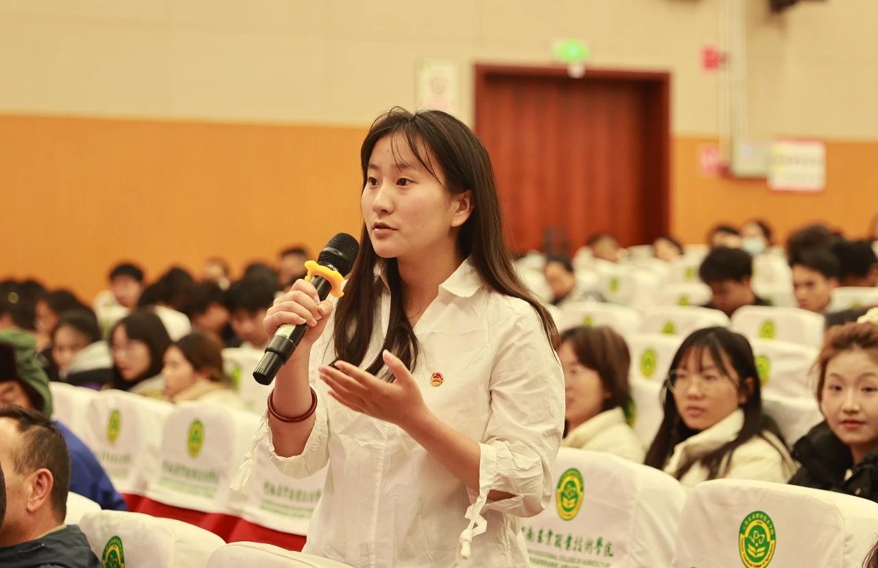 报告结束后,张卓亚老师还回答了学校教师以及青年学生代表的提问,并鼓励大家,农业职业教育前途广阔,大有可为,希望大家立报国强国大志向,作挺膺担当奋斗者。