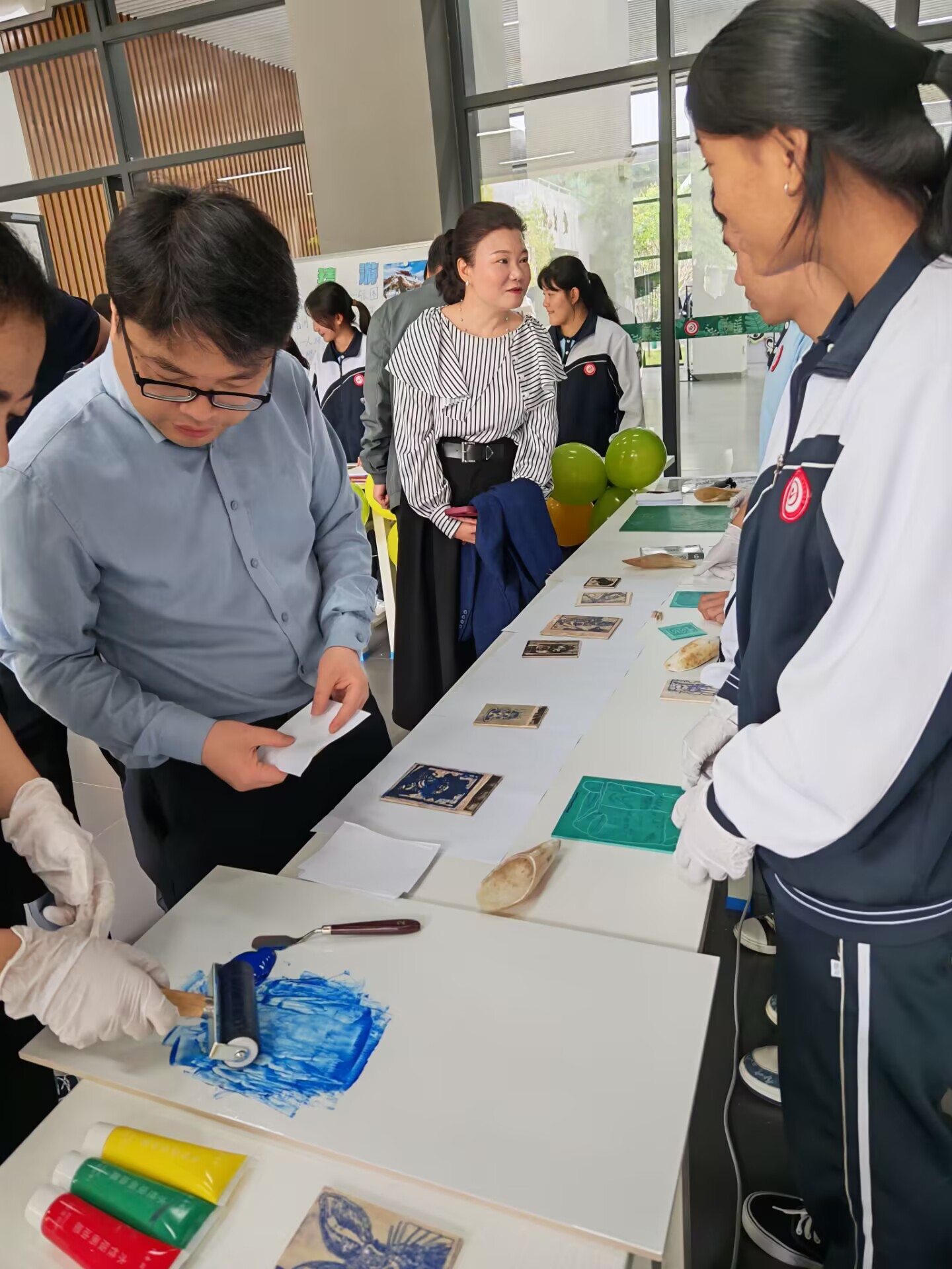 当天上午,考察组深度参与澜沧职中“创新赋能、技能立业、共赢未来”的2025年职业教育活动周。陈太安校长一行观摩了王启飞老师公开课,实地走访了农科专业校内实习实训基地,并在文创作品展区,与同学们深入交流创作思路,高度肯定了同学们的技能技艺与创新精神。