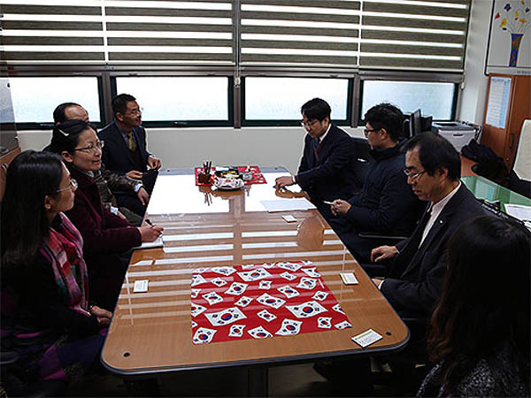 下午15:00—17:00,访问团一行在翰林大学国际交流中心会议室,与翰林大学副校长尹泰日教授、学生处处长成始一副教授、国际地区研究所所长张钒星教授、国际交流中心全载奎部长、中国学科廉哲副教授、国际交流中心郑松默老师进行了座谈。并就共同关心的问题,如交流学生学费、学生奖学金、学生语言障碍等问题深入交换了意见,形成了共识。