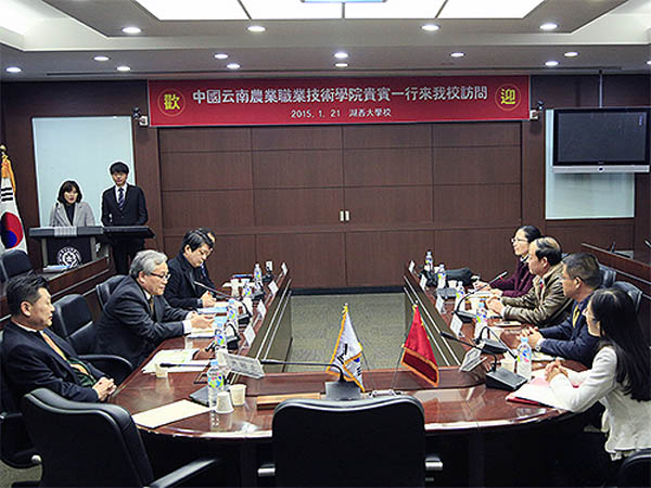 2014年1月19日至1月23日,best365以何明东副院长为团长,对外交流合作处处长凌军、经济管理学院院长谭琳、工程学院院长李一源和基础教学部副主任李憬一行五人赴韩国访问。考察团先后对韩国京畿大学校、韩国翰林大学校、韩国湖西大学校、韩国光州女子大学校和韩国国立江原大学校五所学校进行了交流访问。