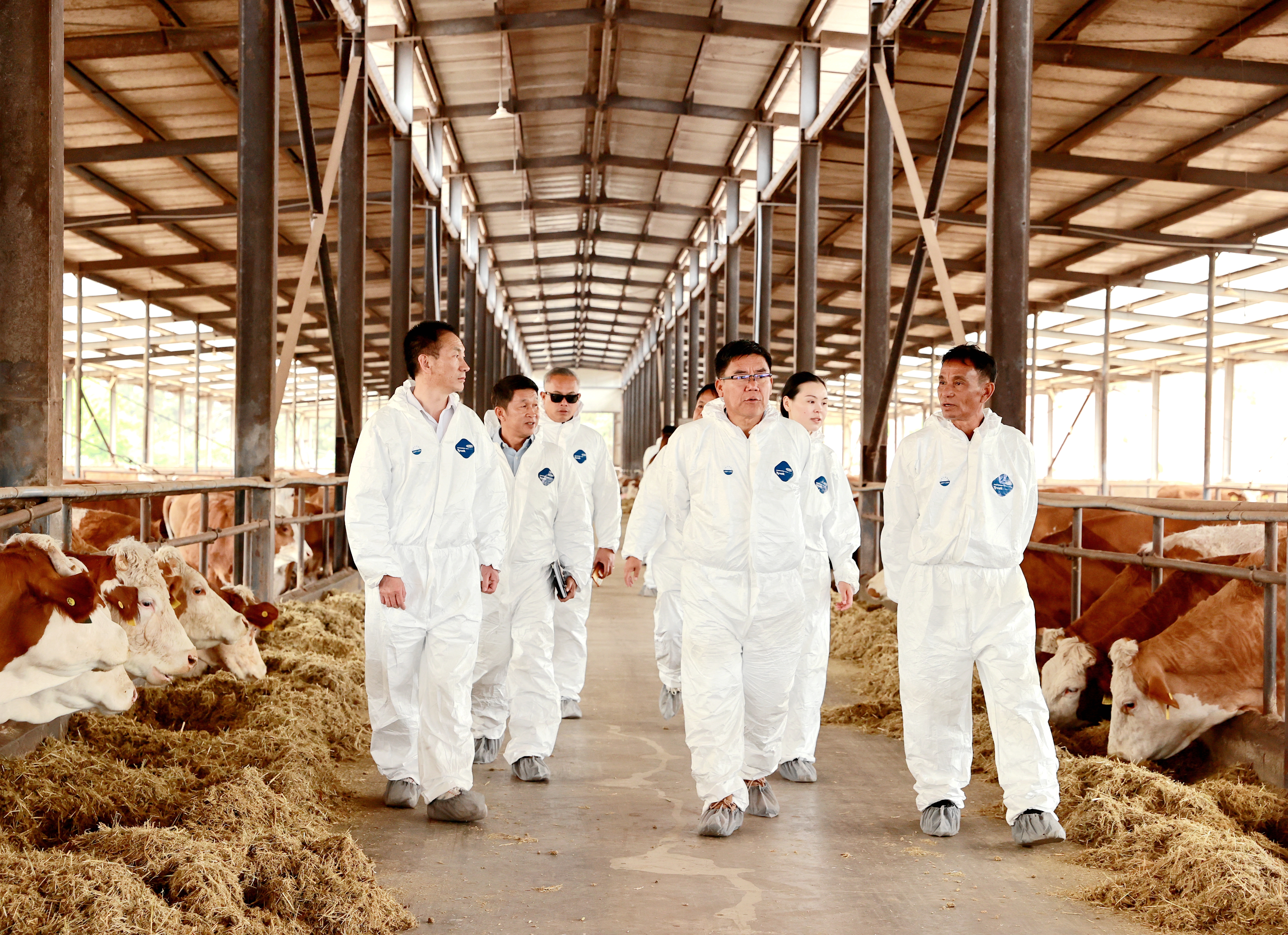 座谈会后,学校种牛场场长刘绍贵带领老挝考察团参观了云南山地牧业科技示范园种牛养殖基地,介绍了种牛场自1996年建场以来的发展历程、华西牛培育及推广、品种改良等情况。考察团深入了解了牧草种植、青贮制作、饲喂管理等环节,并对种牛场的养殖技术和管理水平给予高度评价,表示希望引进中国的华西牛种公牛,推动老挝畜牧业的发展。
