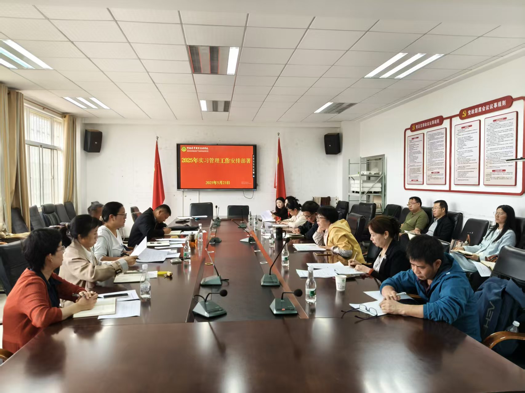 各二级学院分别就岗位实习情况进行总结汇报,均表示当前实习工作平稳有序推进。同时,围绕实习过程中遇到的难点与共性问题,与会人员展开深入交流研讨,积极探索解决方案,凝聚协同推进实习管理工作的共识与合力。