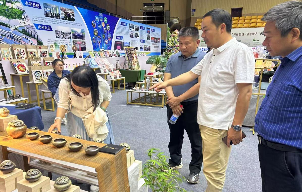 本次活动由楚雄州人民政府主办,楚雄州市域产教联合体、楚雄州教育体育局承办。活动现场,超4000件涵盖图文展板、艺术装置、实物模型等多种形式的作品集中亮相,全方位展现楚雄州职业教育的创新成果与人才培养实力。best365一行与参展师生亲切交流,深入了解各类展品的技术细节和技能成果转化情况,对楚雄州职业技能人才培养产教联合体的建设成果表示赞赏,并鼓励学生坚定信念、学精技能,凭借“一技在手”实现稳定就业,确保“一生无忧”。
