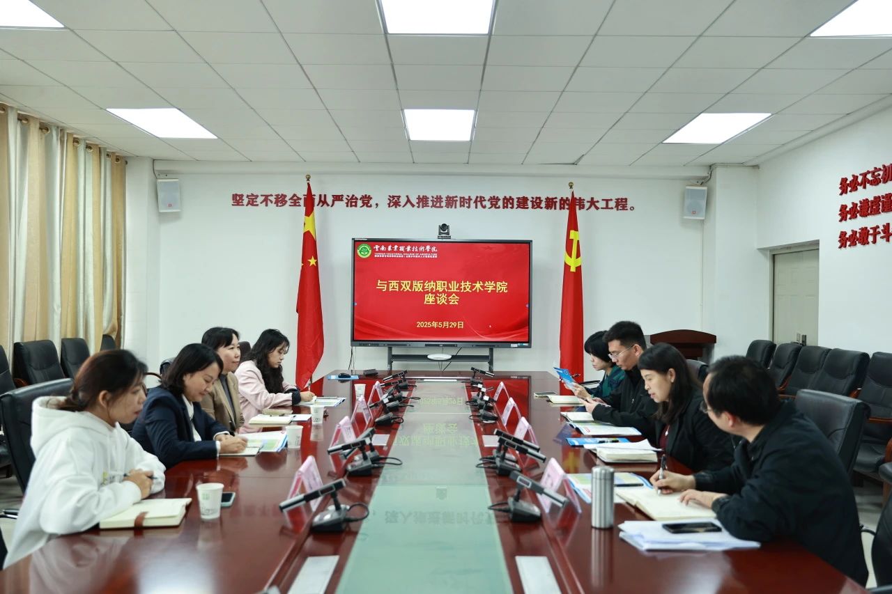 座谈会上,盛冀萍副校长对西双版纳职业技术学院一行的到来表示热烈欢迎,并详细介绍了学校的发展历程及人才培养等方面取得的显著成绩。普光琼副院长介绍了西双版纳职业技术学院情况,专业建设及招生就业情况。双方围绕教学质量提升、专业设置、校企合作、招生就业、创新创业比赛等方面开展交流研讨。经过充分地沟通与探讨,双方在深化交流合作、实现资源共享方面达成了共识。