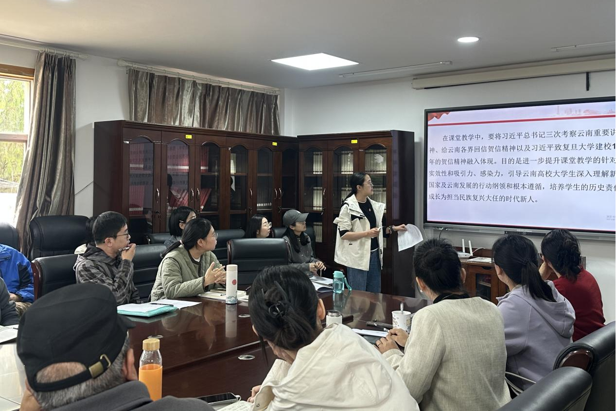 《习近平新时代中国特色社会主义思想概论》课教研室主任陈雨知,阐述将习近平总书记重要讲话精神系统融入课程的方法,构建完整的知识体系,帮助学生全面、深入理解习近平新时代中国特色社会主义思想在云南发展实践中的生动体现。