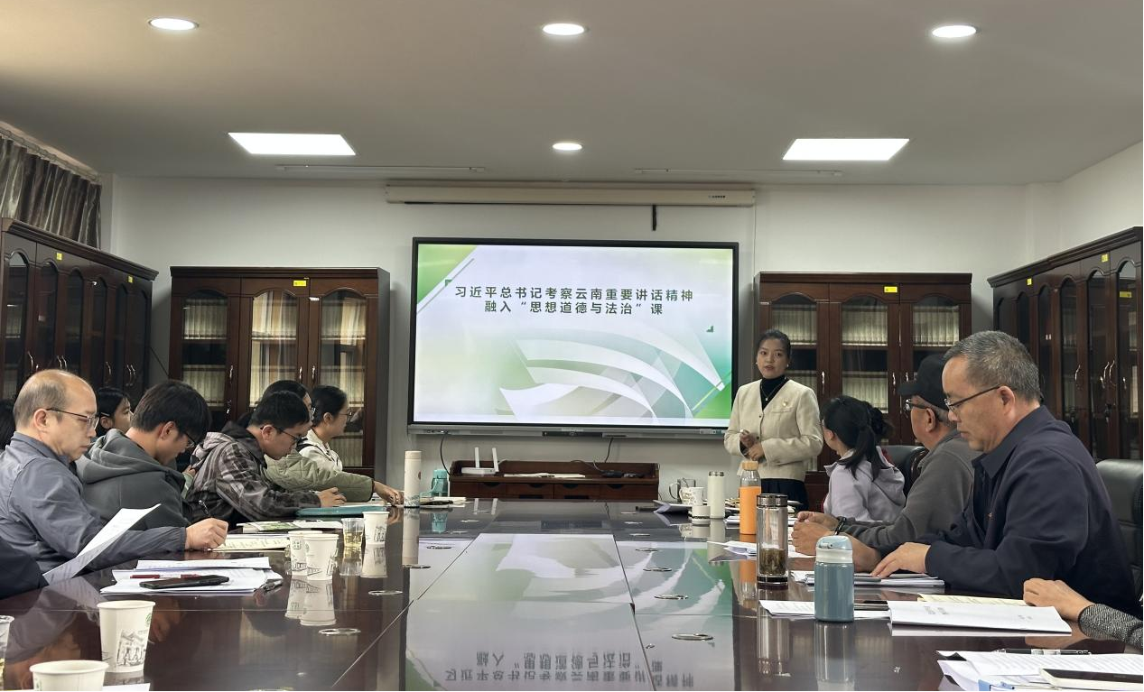 《思想道德与法治》课教研室主任余叶娥,交流如何运用习近平总书记考察云南重要讲话精神中蕴含的价值理念,引导学生树立正确的世界观、人生观、价值观,培养学生的社会责任感与法治意识。