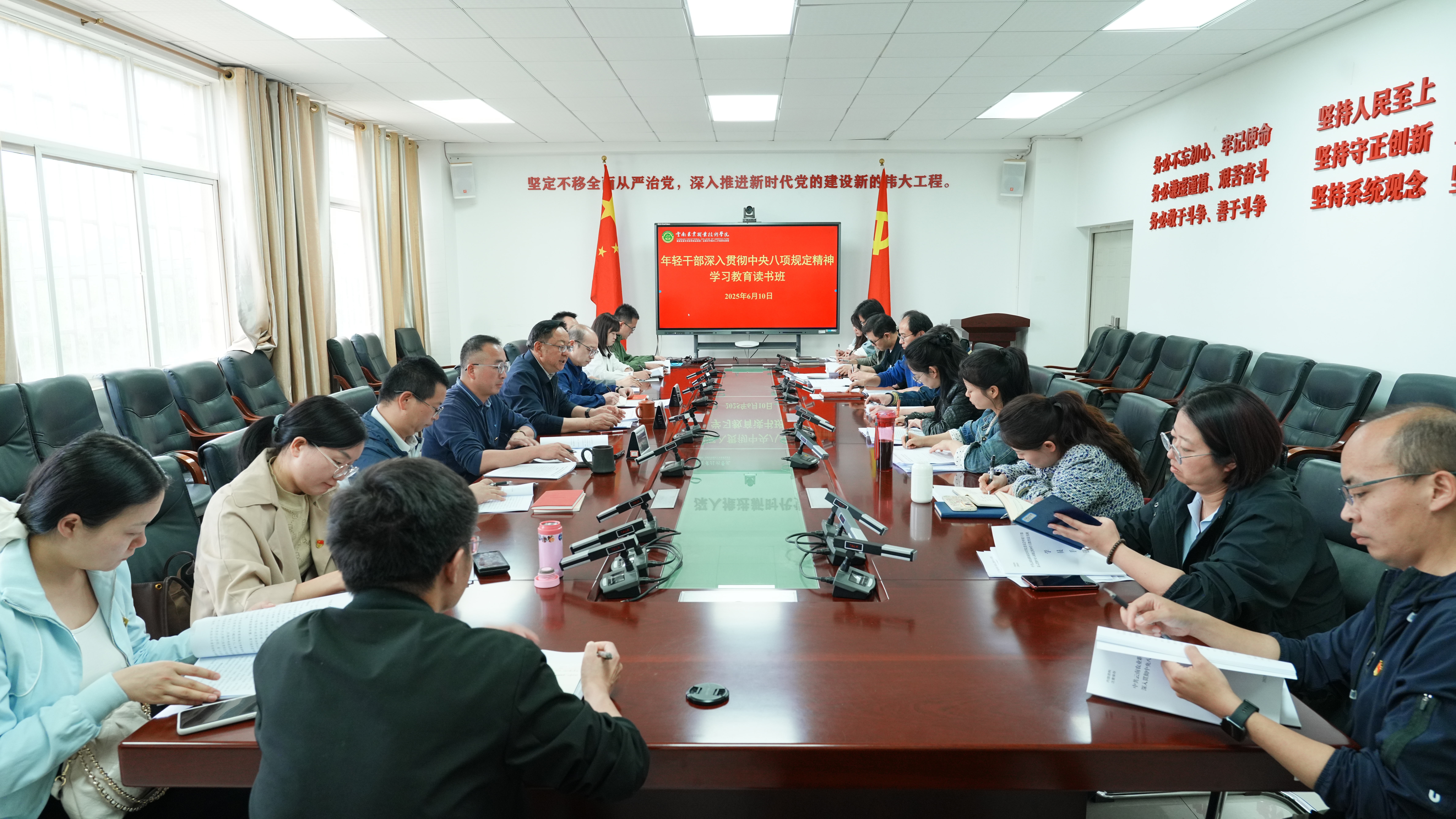 6月10日下午,集中研讨在小哨校区综合楼421会议室举行。学校党委书记文俊,党委委员、组织部部长夏体韬出席会议,会议由党委副书记杨波主持。全体中层年轻干部积极参与学习,读书班紧凑有序且富有实效。