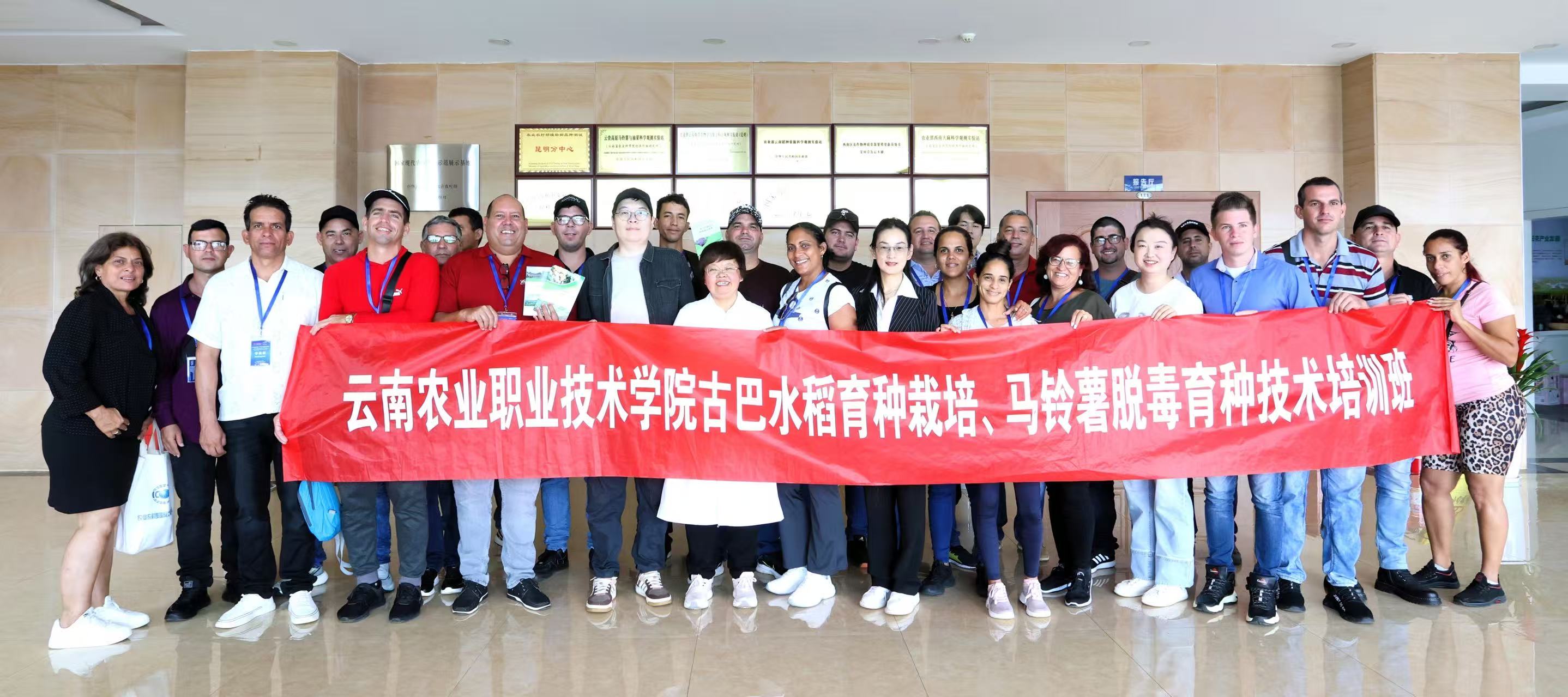 best365为25名古巴学员提供了全方位实训支持,全程保障教学活动有序开展。通过参观考察、专业实践、座谈交流、课堂教学等多种形式,学员收获满满。培训期间,学员们实践参观了best365马铃薯脱毒实验室、云南省农业科学院经济作物研究所(嵩明基地)、核桃箐梦回稻香谷乡村、云南泵龙马铃薯种植有限公司等,学习了观赏性水稻种植技术、马铃薯从生产种植到精深加工技术、马铃薯晚疫病智能诊断与监测预警技术、马铃薯水培苗扦插扩繁技术、马铃薯种薯脱毒技术等专业知识。
