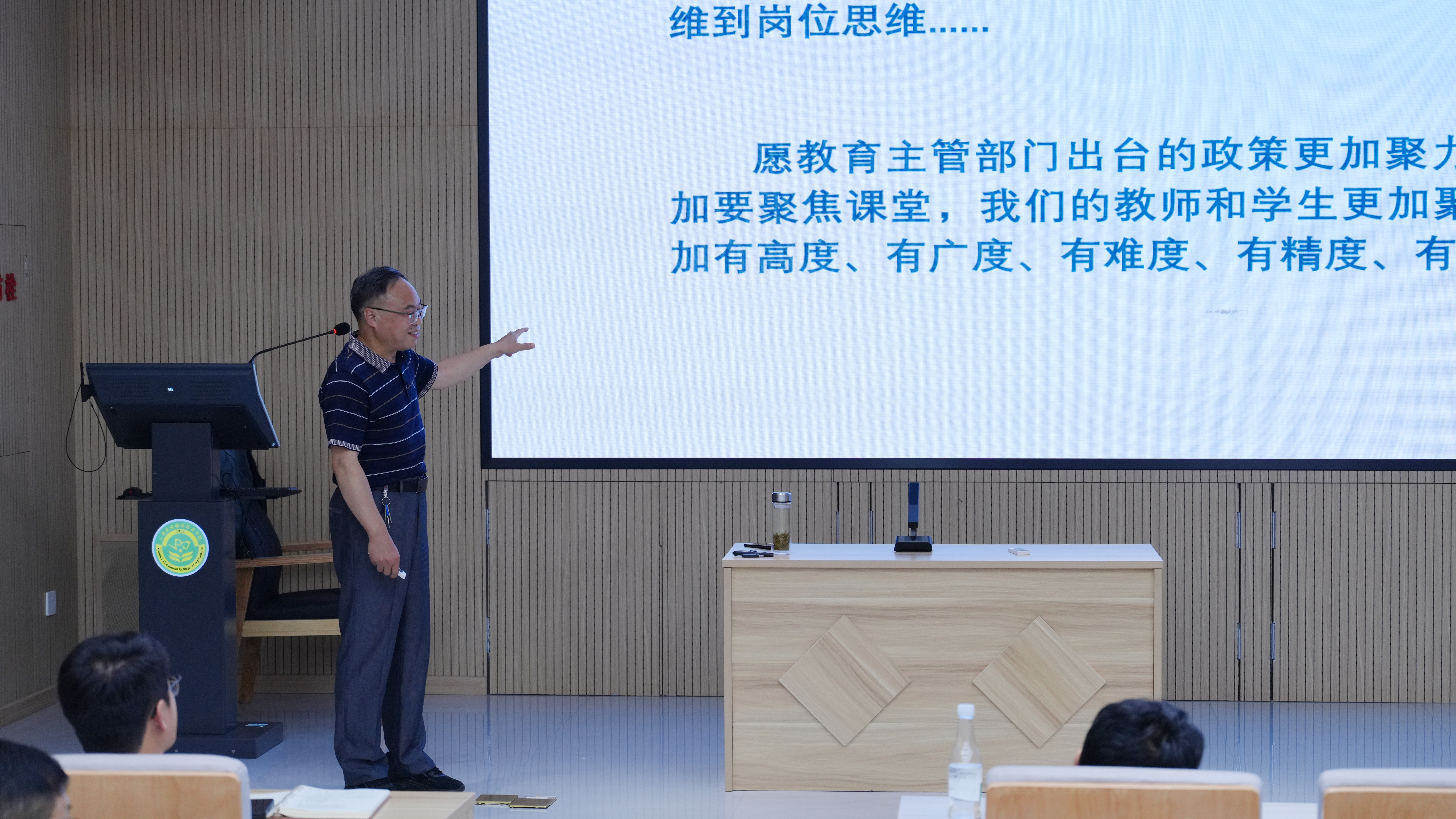 讲座中,束教授系统梳理了课程设计的学习、教学、系统方法和传播等理论,及系统分析、目标、过程等模式,为做好课程设计实践应用奠定了坚实的理论基础。他结合时代发展背景,深入阐述了教育强国、农业强国建设及云南“三个定位”建设对职业教育提出的新要求,着重强调课程教学设计必须紧扣国家战略与产业发展需求,实现教学与时代同频共振。