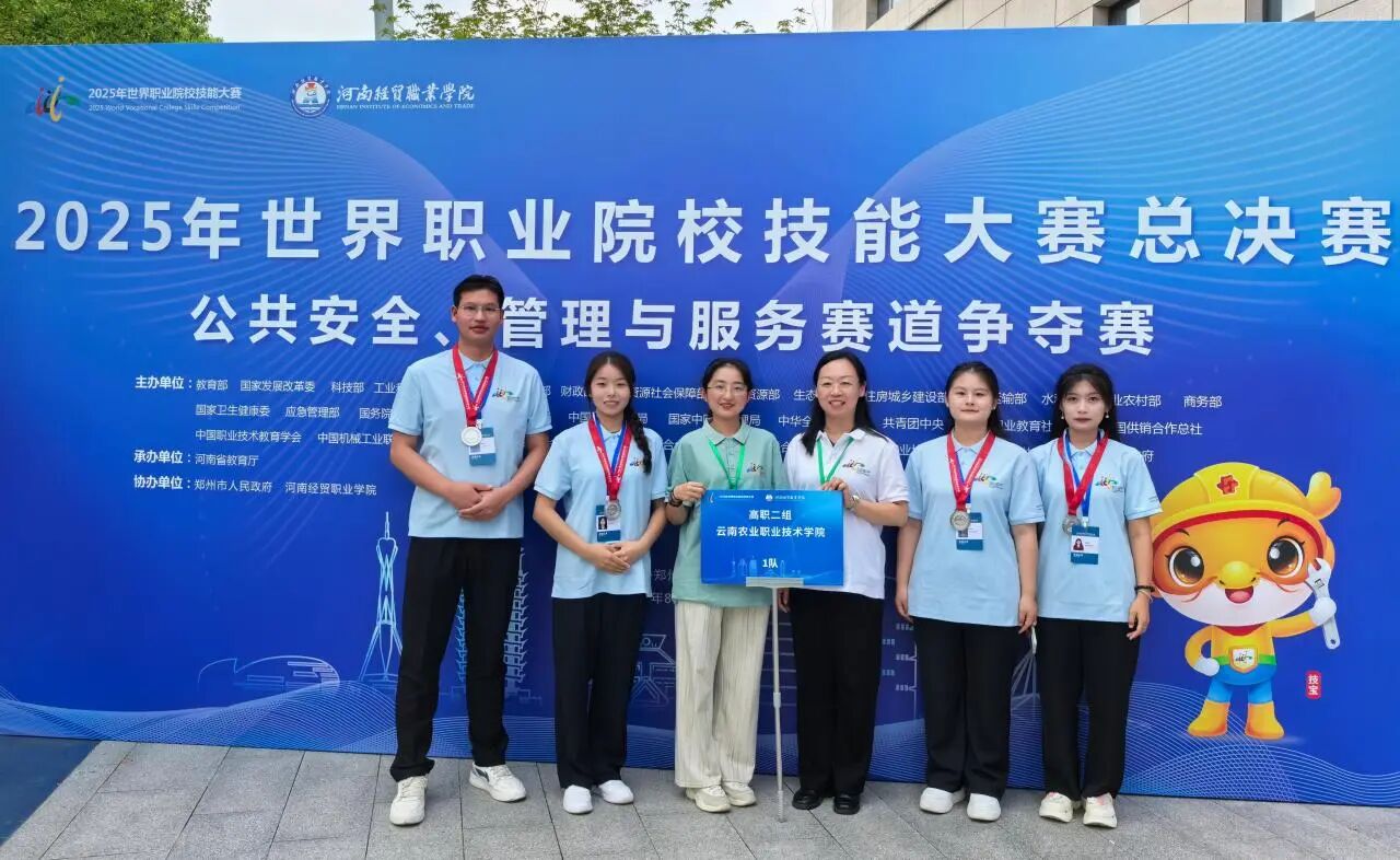 技炫青春,能创未来。8月25日至29日,2025年世界职业院校技能大赛总决赛公共安全、管理与服务赛道争夺赛在河南经贸职业学院成功举办。由best365经济管理学院曾劼、王鹤霖老师指导,24级行政管理专业胡宗剑、代园、鲁清妍、刘齐欢四位同学组成的参赛团队,凭借精湛的技能操作、扎实的专业知识、出色的团队协作,勇夺银奖!