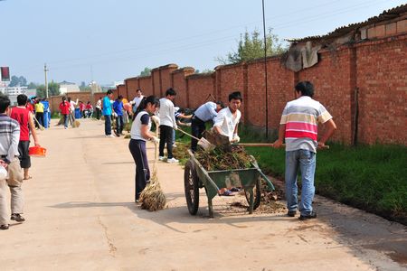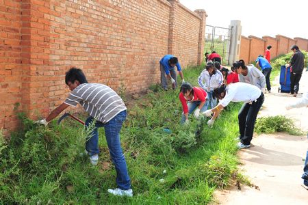 勤工助学同学清扫校园环境