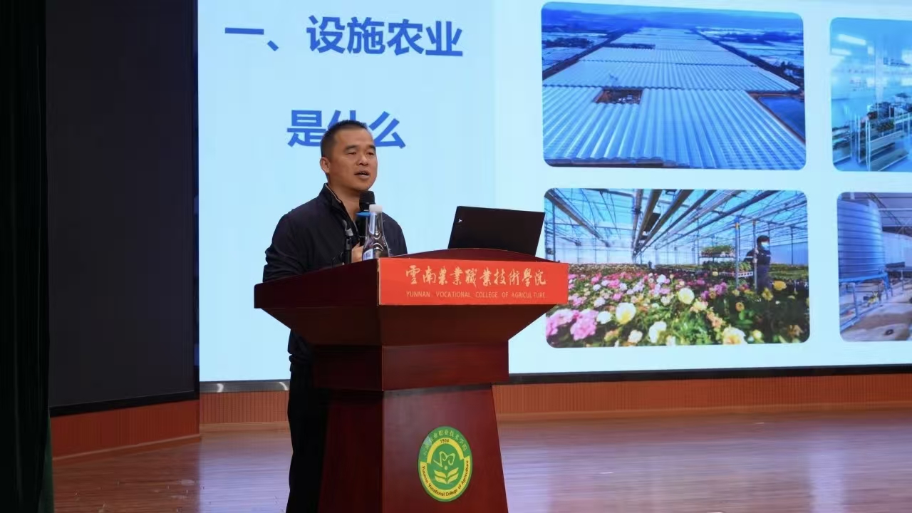 金晓伟先生从云南设施农业的发展路径、产业发展现状、现代农业技术体、设施农业实践案例等多个维度切入,梳理了设施农业从传统种植到智能化管理的发展历程,对比了不同阶段的技术应用案例,详细解读了智能温室、无土栽培、物联网监测等前沿技术的实际应用场景与未来发展潜力,同时深入分析了设施农业在保障国家粮食安全、推动农业现代化转型中的关键作用,为师生们搭建起“理论知识+产业实践”的认知桥梁。