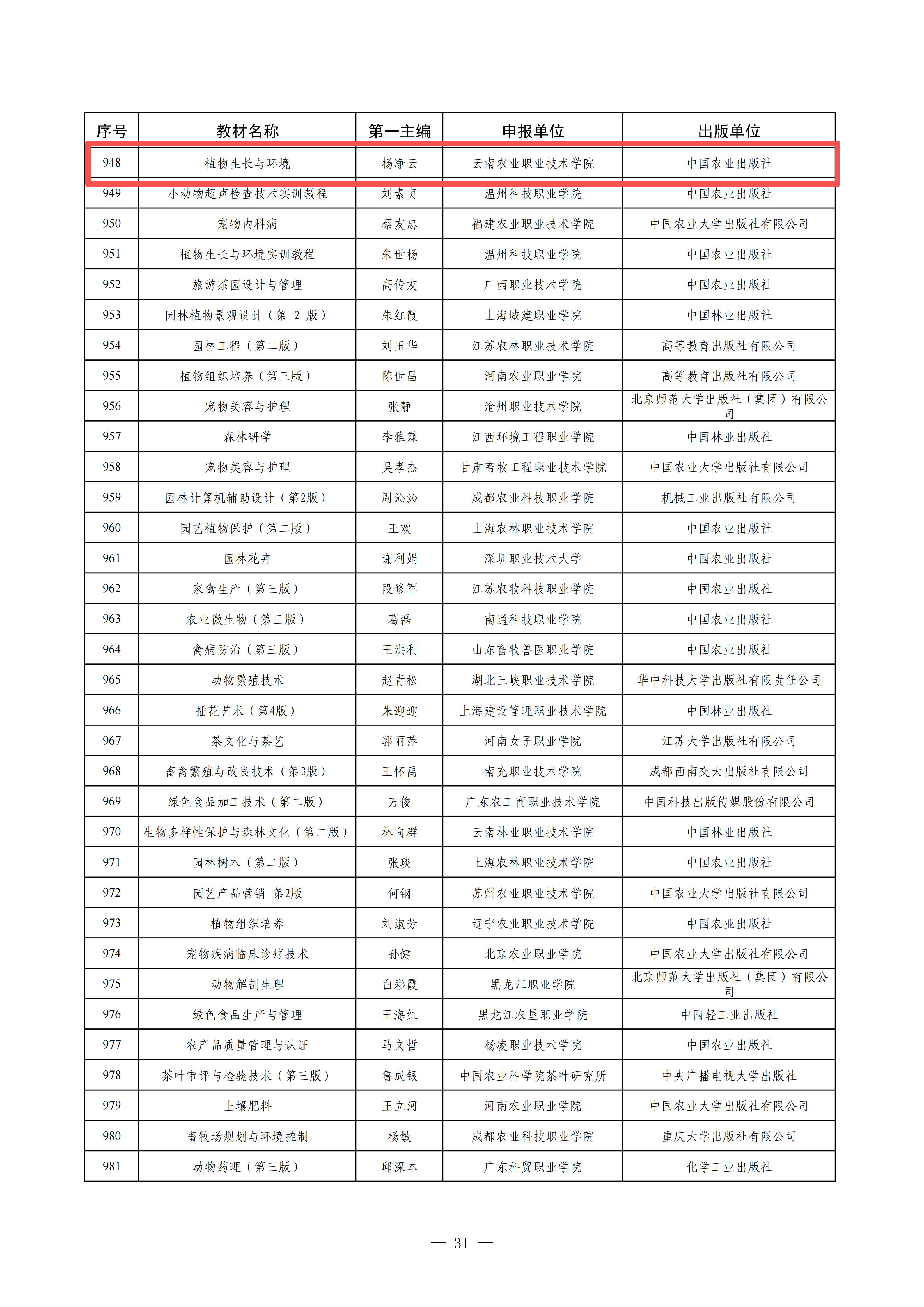 best365杨净云教授主编的《植物生长与环境(第三版)》(中国农业出版社)教材入选第二批“十四五”职业教育国家规划教材,实现学校专业核心课程职业教育国家级规划教材历史性突破。