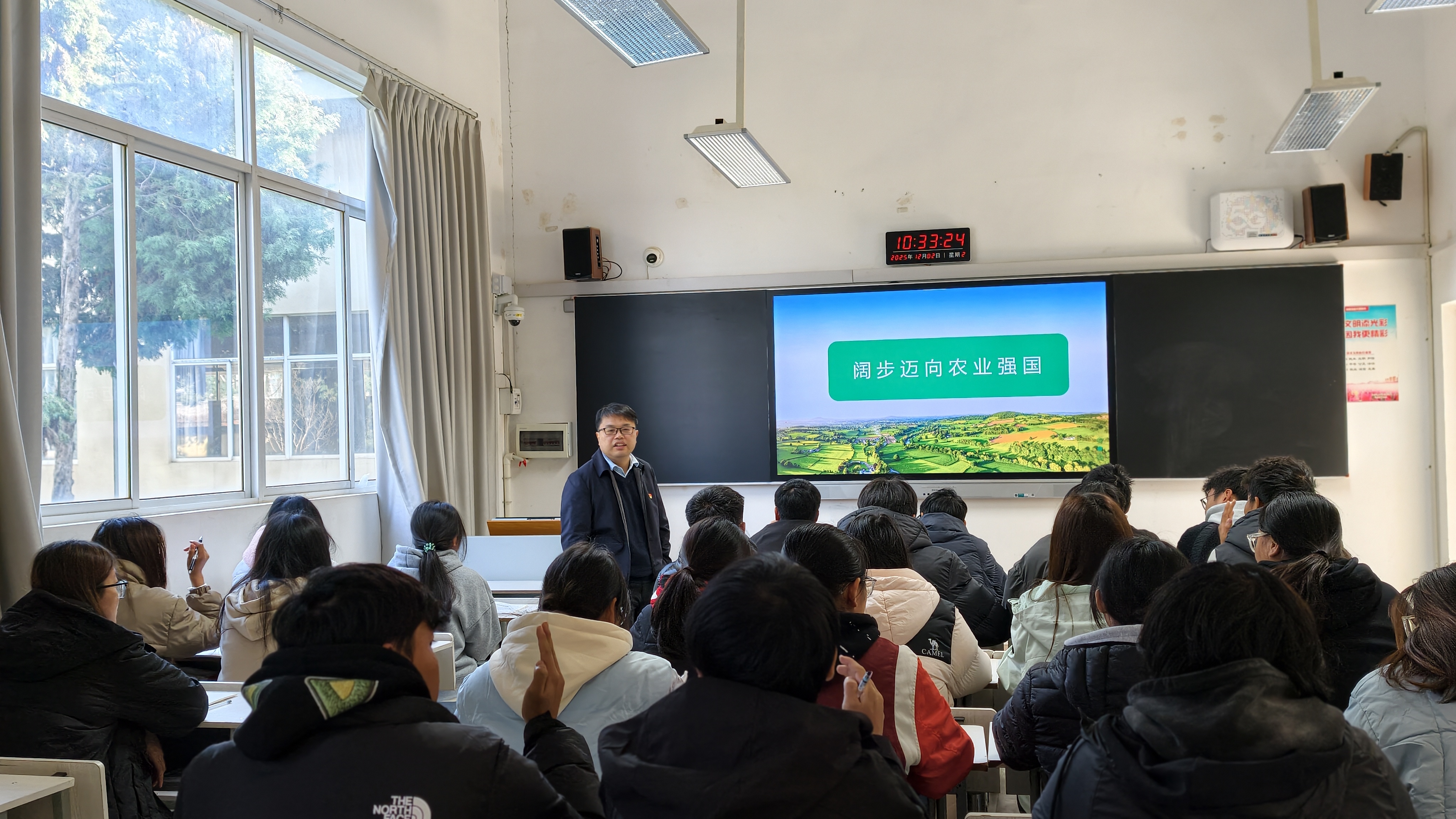 校领导思政课围绕多主题覆盖有序推进。文俊书记以《深入学习党的二十届四中全会精神 勇担时代使命奋力开创中国式现代化新局面》为主题、陈太安校长以《阔步迈向农业强国》为主题,为25药品生产技术一班同学解读全会精神与时代使命;文俊书记再以《铸牢中华民族共同体意识》为25花卉生产与花艺一班同学授课,勉励大家做铸牢中华民族共同体意识的坚定信仰者、积极传播者、模范践行者,在推动“美丽产业”升级、服务民族地区发展的征程中,书写下属于一代人的、光彩夺目的民族团结进步新篇章。