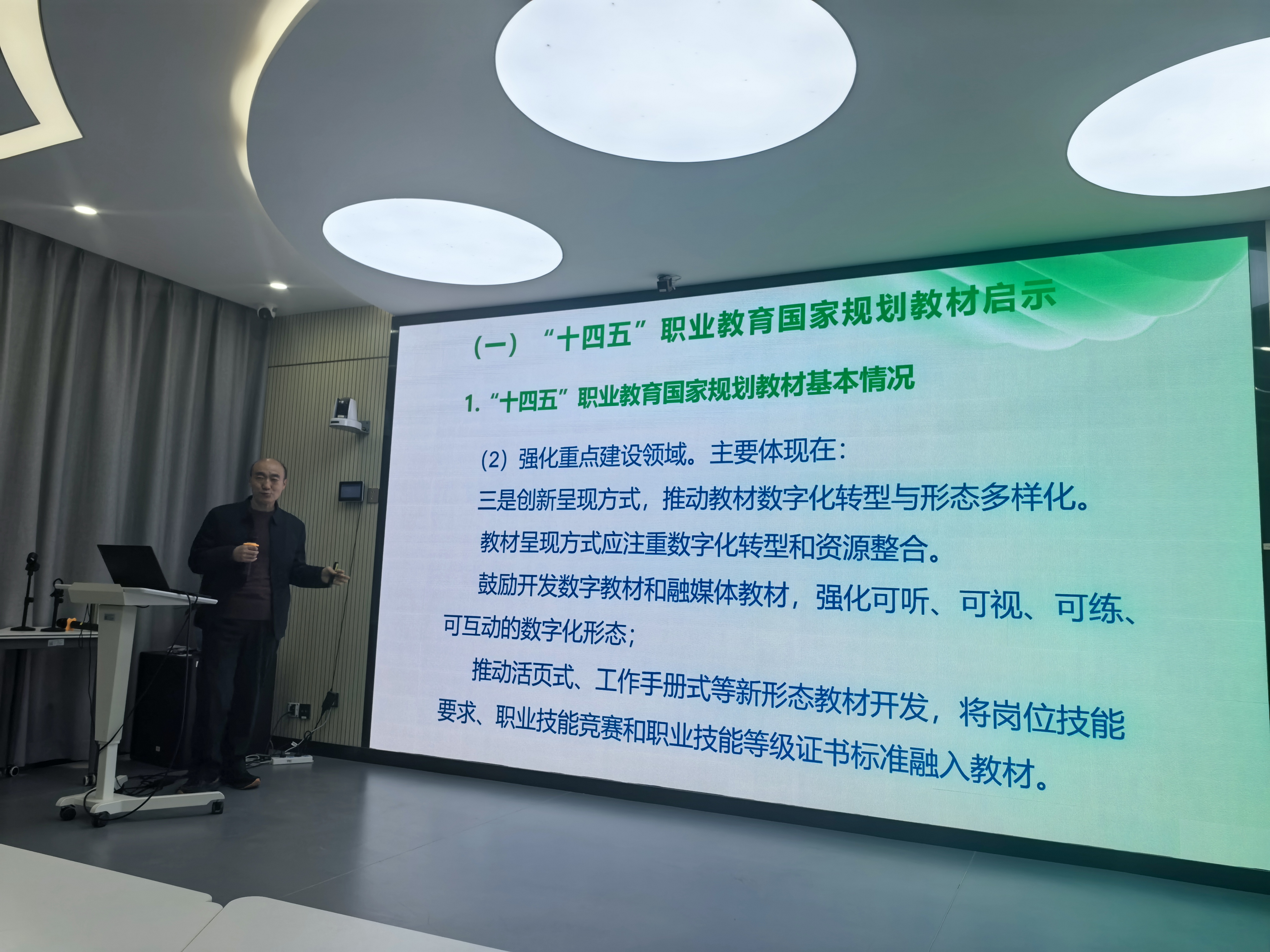 本次培训邀请宋志伟教授作题为《产教融合引领驱动下一流核心课程与新形态教材建设》讲座,聚焦“十四五”职业教育国家规划教材解码、职业教育国家在线精品课程观测指标解读、一流核心项目化课程设计、校级重点课程立项申报解读和校级规划教材立项申报解读等五个方面展开系统讲解。