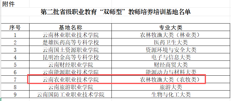 通知中心近日,云南省第二批省级职业教育“双师型”教师培养培训基地名单公布,学校成功入选,成为农林牧渔大类(农牧类)领域的省级培养培训基地,这是云南省教育厅对学校在农林牧渔领域长期深耕办学成果、师资建设水平的高度认可。