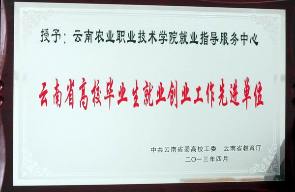 据《中共云南省委高校工委 云南省教育厅关于表彰全省高校毕业生就业创业工作先进集体和先进个人的决定》文件获悉,我院就业指导服务中心荣获“全省高校毕业生就业创业工作先进单位”称号,招生就业处处长潘彦维、畜牧兽医系招生就业科科长浦仕飞荣获“全省高校毕业生就业创业先进工作者”称号。(招生就业处供稿)