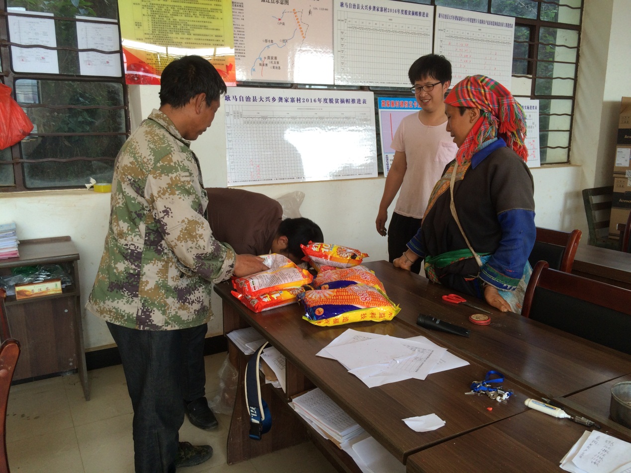 玉米综合试验站项目扶贫物资到达龚家寨村委会