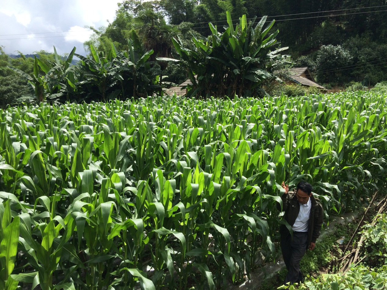 按照技术人员和驻村工作队的持续关心和指导,经过村民们两个多月的辛勤劳作, 2016年7月9日,经过驻村工作队走访调查,发现由于今年雨水充沛,光照适宜,新品种玉米配合新技术后,各村组玉米均长势良好,其中新品种禾玉88长势比红单10号更胜一筹,二者在植株长势上,结包结穗上都比以前的品种优秀,很多村民表示,今年丰收的希望很大。