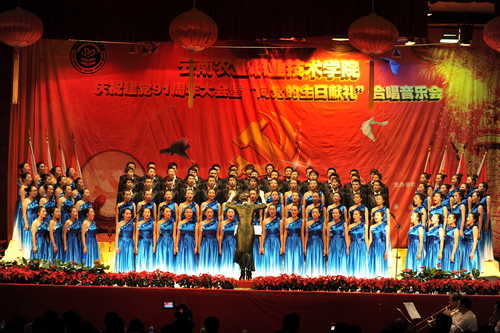 大会的第二部分是全体与会师生兴致勃勃地欣赏“向党的生日献礼”合唱音乐会,并特邀农业厅领导出席指导。音乐会由党委宣传部组织的100名“学院大学生合唱团”经过半年多紧张有序地排练,精心准备了《在太行山上》、《十送红军》等九首大家耳熟能详、喜闻乐见的红歌奉献给党的生日;同时,也借此机会向全院师生作汇报演出。卢雪梅老师精湛的指挥,与合唱团高亢、嘹亮、优美的歌声征服了上下两个校区的师生。经久不息的掌声表达了广大党员和全体师生对党的热爱、对祖国的热爱、对学院合唱团辛苦付出的充分肯定!(党委宣传部 供稿)