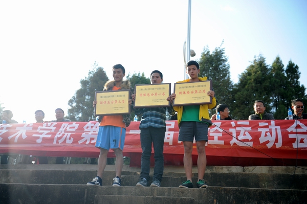 12月5日下午4:30,历时三天的第十一届田径运动会暨冬季趣味运动会在小哨校区田径运动场圆满落幕。组委会全体成员、全体运动员、裁判员、教职工及同学参加了闭幕式。闭幕式由何明东副院长主持。