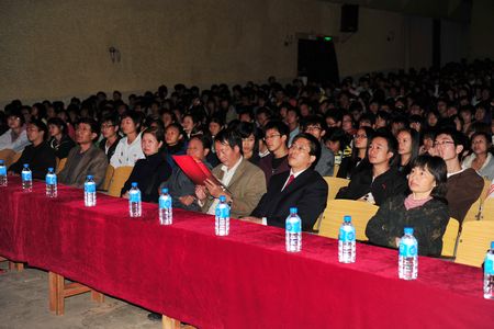 在济济一堂的礼堂和欢快的剧前音乐声中,崔书记宣布话剧演出暨第六届大学生艺术节开幕!学生工作处处长周诚致开幕辞。