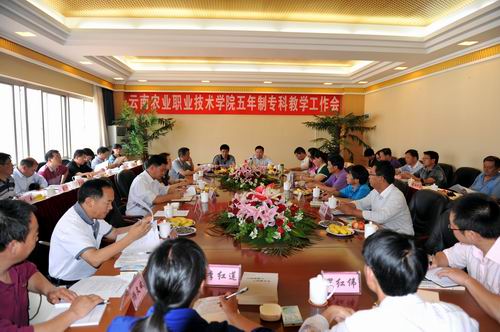 5月24日,学院在昆明西园北路楚雄大厦隆重召开“五年制专科教学工作会”。学院党委书记崔金赋、院长彭志远、党委副书记赵刚、副院长赵莉、院长助理田应华,学院教务处、党(院)办、招生就业处、示范院校建设办公室、计划资产财务处、学生工作处、党委宣传部、畜牧兽医系、园艺与园林工程系、生物工程系、管理与信息工程系、基础部、思想政治理论教学部的负责人,以及来自大理农业学校、曲靖农业学校、普洱农业学校、昭通财贸学校、丽江民族中等专业学校、迪庆民族中等专业学校、南涧县职业中学等七所联办学校主管教学工作的领导等出席了会议。赵刚副书记主持会议。
