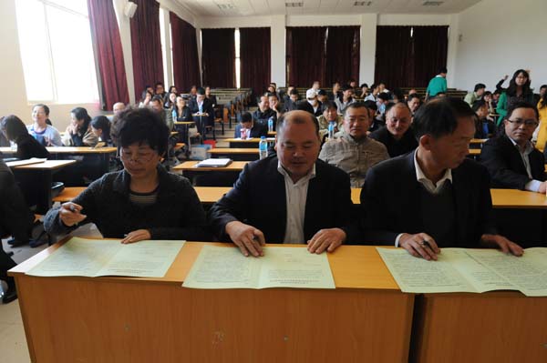 会议最后,赵刚副书记宣读2014年度就业工作表彰文件。台上就坐的领导向获奖集体和个人颁发了2014年度就业工作奖。(党委宣传部供稿)
