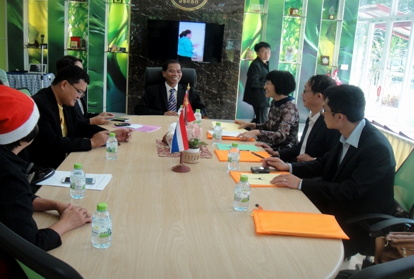 27日,代表团低达清迈农业技术学院,参加了由院长科波克特先生主持召开的欢迎座谈会,番教育职业学院院长坡里特先生和相关人员参加了会议,双方就互派交流的学生在各自学院的生活、课程安排情况和共同关心的问题进行交换意见,并实地考察了泰方的教学、实训基地情况。