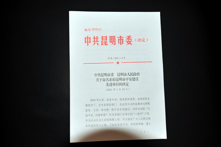 通知中心据昆明市委2011年1月19日“昆通[2011]4号”文件,关于“中共昆明市委、昆明市人民政府关于命名表彰昆明市平安建设先进单位的决定”,对昆明市245个先进单位进行了表彰和命名,我院荣获“昆明市平安建设先进单位”称号!