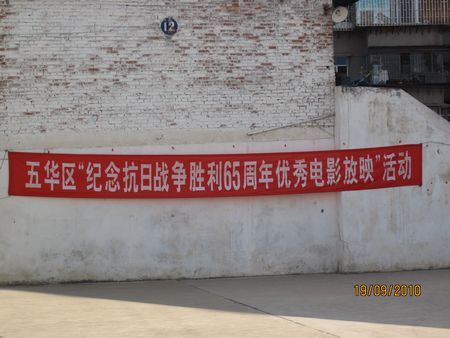 2010年9月19日晚7:30,五华区龙翔办事处茭菱社区安排在我院茭菱校区篮球场放映由潘长江、郭达主演的《举起手来》,纪念中国人民抗战胜利65周年。该电影以形象生动、幽默诙谐的剧情和栩栩如生的人物形象教育青年学子不忘国耻、奋发图强!