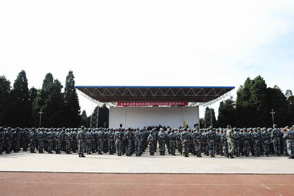 大会在雄壮的国歌声中拉开了帷幕。俞浩副院长发表了热情洋溢的讲话,他代表学校党委向承训的昆明民族干部学院各位领导、教官们表示衷心地感谢!向为军训辛勤工作的老师们、积极参加训练的同学们表示亲切的问候和良好的祝愿!俞浩副院长对全体参训的同学提出要求:第一,深刻认识参加军训的重大意义。军训是全面贯彻国防教育法、推进素质教育的需要;是增强忧患意识,加强国防后备力量建设的需要;是增强国防观念、维护祖国统一的需要;是学习部队优良传统,培养艰苦奋斗精神,增强组织纪律性的需要;第二,要不怕吃苦,耐得枯燥。军训是一个艰苦的过程,是对同学们体力和意志力的一次重要考验。第三,要严守纪律,争当模范。军训是一个提高个人组织纪律性的过程。希望同学们在军训中学先进、比先进,形成争先创优的良好氛围;第四,虚心学习,严格训练。军训是一次难得的接受教育和加强学习的机会。希望同学们在每一个环节都要用军人的标准严格要求自己,尊重教官。服从命令,认真、扎实地学习训练内容,学习军队的好思想、好作风、好传统,把军训中的获得化为学习的动力,用出色的表现为大学生活开好头,起好步。