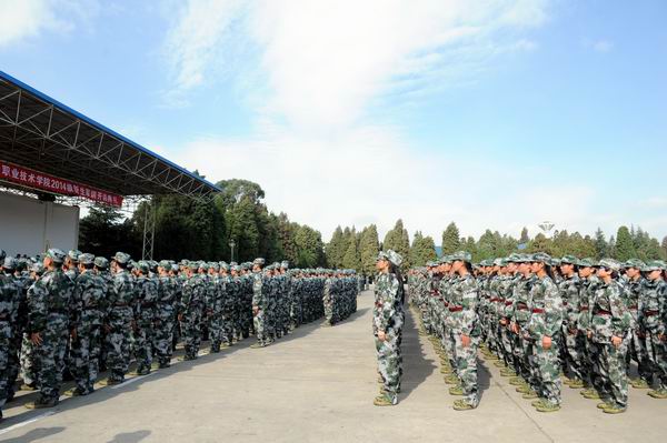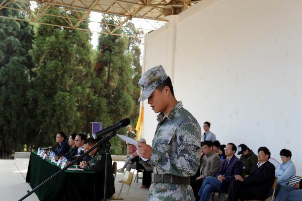 昆明民族干部学院的教官代表在讲话中表示,为了圆满完成本次军训任务,全体教官决心做到:按计划严格施训,做到科学管理、科学训练;不打骂、不体罚学生,做到以情带兵,以理服兵;在生活中,力尽所能关心、帮助每一位同学,与老师一道将各项工作做好;培养同学们吃苦耐劳、团结协作、爱国奉献、顽强拼搏的作风,力争让每一位同学有所获、有所得;保质按量地完成各项任务,以优异的成绩向领导和老师汇报。