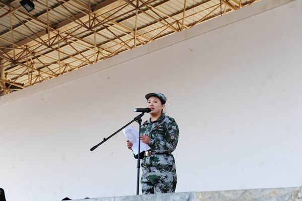 畜牧兽医学院14级畜牧兽医(3+2)2班的张耀丹作为学生代表发言。张耀丹同学代表全体参加军训的学员承诺,一定秉承精诚团结,学用结合,善谋实干,知难而进创新发展的精神,在军训中坚决服从教官的指挥,以现代人的品质、现代人的气魄,严肃认真,高标准、高质量地完成好本次军训!并以此为动力,用自信、勤奋、意志来武装自己,努力学习,踏实工作,用智慧、勇气和永不服输的年轻心,向着生命中每一座山峰,勇敢攀登,从稚嫩走向成熟,从现在走向成功,为学校增光添彩!