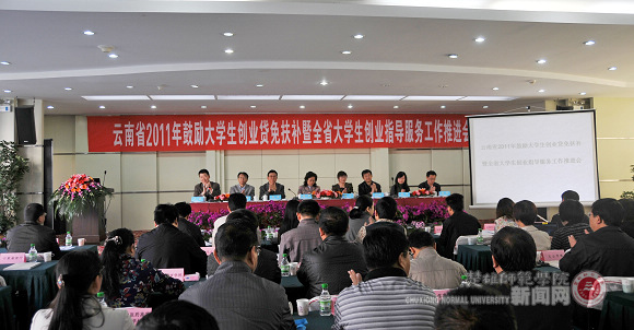 云南省教育厅学生处处长卢明主持会议。省委高校工委副书记陶晴出席会议并作了讲话,对2011年鼓励大学生创业“贷免扶补”工作进行部署。会上,昆明市教育局、云南农业大学、楚雄师范学院等五家单位,就鼓励大学生创业“贷免扶补”工作及大学生创业指导教育服务工作进行了交流。省人力资源和劳动社会保障厅就业局副局长宴淼就云南省鼓励大学生创业“贷免扶补”的政策及整体工作思路做了介绍。会议还专门邀请了人力资源与劳动社会保障部研究所就业政策研究室主任李宏博士和大学生就业指导专家李震东教授进行了专题讲座。对如何做好大学生创业指导教育服务工作作了全方位的指导。