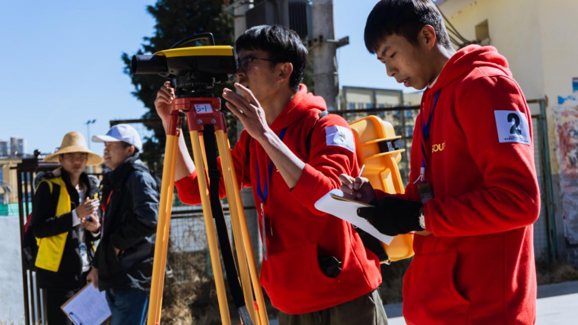 两天的比赛时间稍纵即逝,赛场上的一分一秒都是参赛选手们平时训练结果的展现,无论是外业中争分夺秒的测量,还是内业中聚精会神的绘图,无不展现着选手们挑战自我、展示青春的风采。