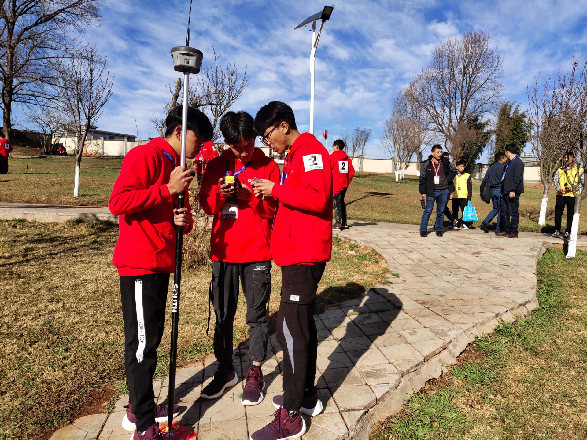 1月6日,各参赛队报到后,在赛场进行现场抽奖,并认真勘踏了二等闭合水准测量及1:500数字化测图两个赛项的赛点,熟悉比赛场地,为后续比赛做最后的准备。1月7日上午,参赛队指导老师及学生代表参加完2020年云南省职业院校技能大赛best365中国官方网站分赛区开幕式后,紧张而充实的比赛便正式开始了,各队参赛选手们激情澎湃、以百分百的热情投入比赛,没有比赛的其他参赛队伍也在赛场周围认真观摩。