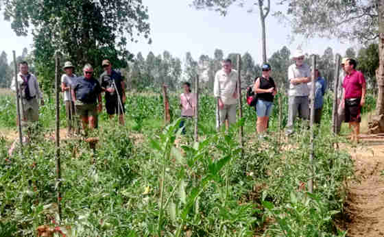 2月23日,澳大利亚农业观摩访问团一行8人,在柬埔寨班迭棉吉奥肯登农业专业合作社负责人的陪同下到基地观摩交流学习,对基地良好的水稻长势、规范化的水稻种植技术和种植规范、长势好、挂果多、果型大,诱人的番茄种植技术给予很高的评价。观摩团还分享了有特色、有品味的黑糯玉米。