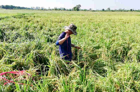 扶正倒伏的水稻