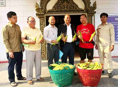 2、示范种植展示中国云南玉米品种云糯4号、黑糯1号2个品系、越南玉米品种1个(当地主推品种作对照)。3个品种播种面积共16亩,分8期播种。中国云南玉米品种到3月6日全部收获上市或赠送班迭棉吉省各级部门宣传鉴品,特别是黑糯1号玉米品种产生了较好的宣传效果。存在的问题是:本种植周期播种的玉米,在整个生产过程中虫害危害严重,“草地贪夜蛾”这一全球性的害虫在柬埔寨暴发,从玉米幼苗期到玉米鲜食收获期都有危害,给防治造成不小困难。可喜的是在防治过程中筛选了当地农资市场两种杀虫剂,防治时用两种杀虫剂现混现配喷雾。玉米在营养生长期喷到玉米心叶处,玉米在生殖生长期(抽雄吐丝期)喷到果穗以上部分,防治效果较好。这一防治方法已分享给班迭棉吉农业厅指导当地玉米种植户推广使用。