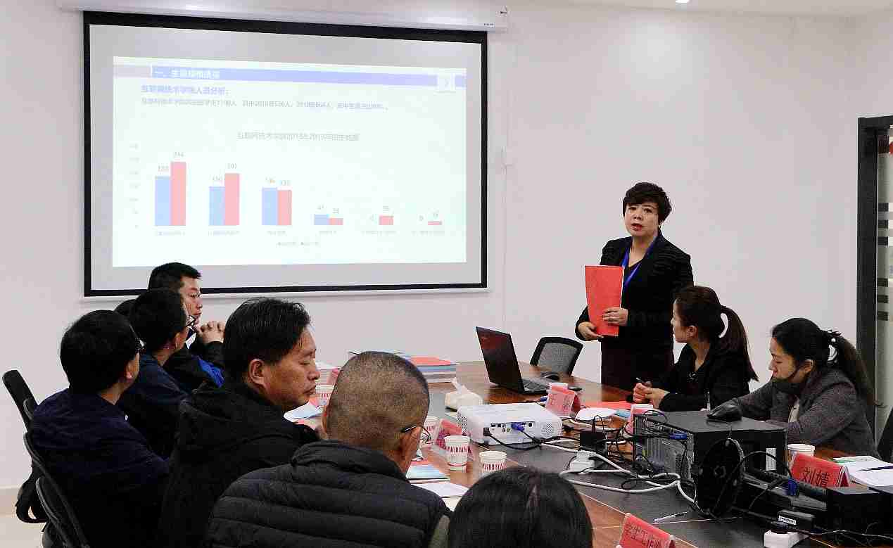 之后,学院参会各部门领导立足本部门职责,依次进行了项目数据的核实,并针对性提问。各部门对于互联网技术学院项目实施的成果积极肯定,期待更佳。教务处张江荣处长表示,教务处与美和易思农职项目的教学对接沟通顺畅,配合默契,对校企合作中体现出的很多教学亮点表示认可和满意。同时,张处长也提出了建议,一是建议互联网技术学院教师尽快获取高校教师资格证,在身份上符合要求;二要希望进一步加强与学院其他部门的教学交流,让学校普通教师也熟悉和融入互联网技术学院的工作和特色。学生工作处凌军处长十分肯定美和易思“爱的教育”学工管理理念,他表示互联网技术学院在学工管理方面服从学校管理,成绩显著。建议今后加强二级学院团学队伍建设,紧跟教育厅要求,做好控辍保学工作。实践教学中心、督导室负责人、计划资产财务处有关人员参加会议,积极肯定美和易思的办学理念和办学成效,纪检监察审计处全程监督考核工作。