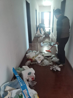 活动中,大家不怕脏、不怕累,拿着铁锹、镰刀、扫帚、拖把等工具,铲除外围杂草、清扫垃圾、拖走灰尘,经过3个多小时的辛勤劳动,把长期未使用的一间间房间和外围环境打扫干净,共建整洁优美的办公地点,同时为共同抗击疫情出一份力。