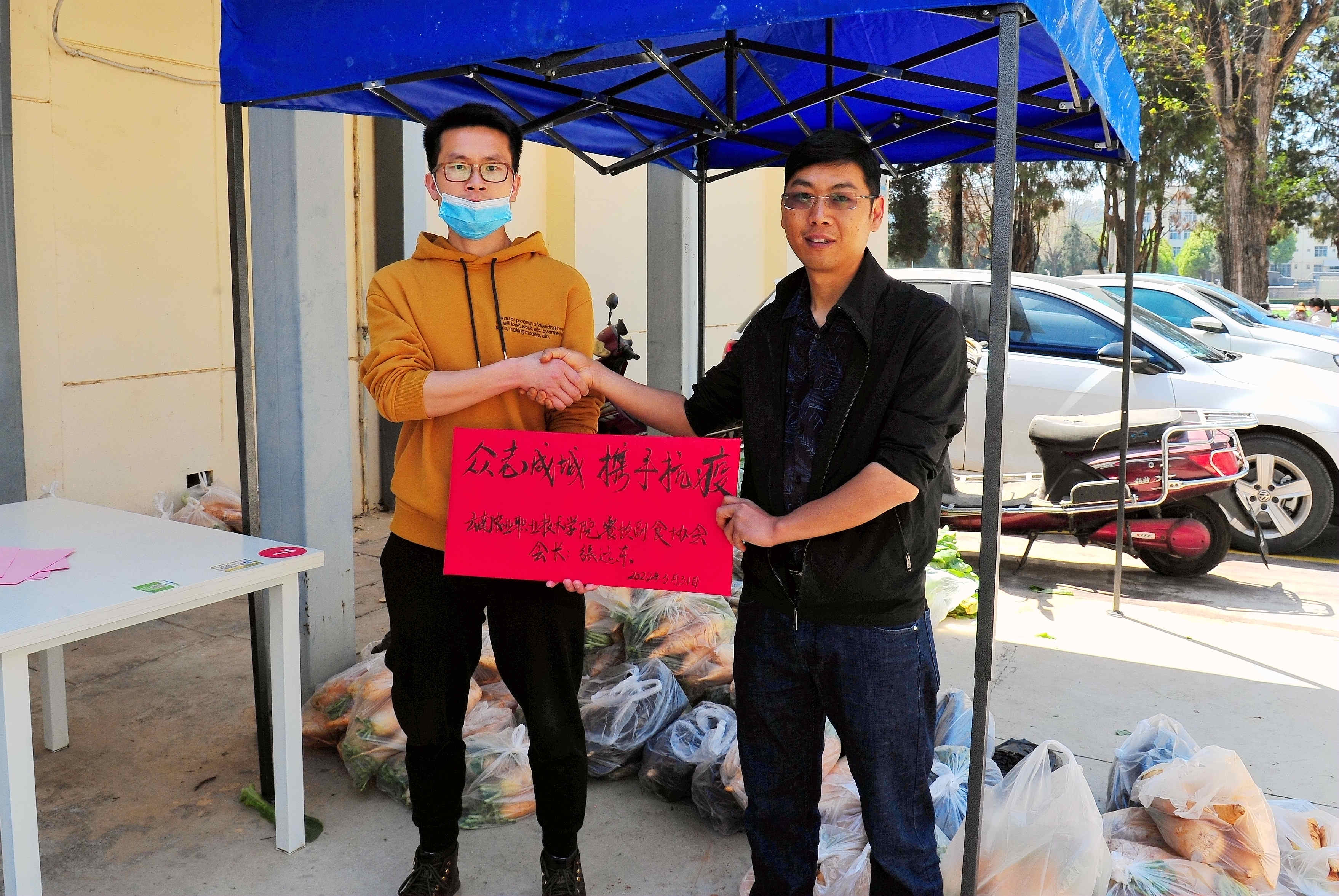 为了回馈学院,为抗疫工作尽一份力,由学院餐饮副食行业协会理事长单位云南帅豪农牧科技有限公司负责人张远东发起,从协会300亩种植基地捐赠了这批新鲜蔬菜至学院食堂和教职工。此次暖心捐赠体现了校企守望相助共抗疫情的决心,让我们同心协力早日打赢疫情防控阻击战。