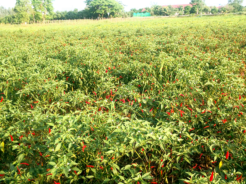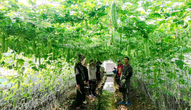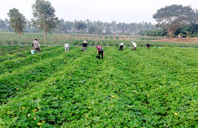 2、示范种植的蔬菜品种有较好的展示效果,小黄瓜、冬瓜、豇豆、茄子、苦瓜、南瓜、小米辣和部分小果型番茄选用当地品种示范展示,都有较好的生长势和产量表现,其中:小黄瓜产量达到14600千克/公顷(播种—收获完成60天);冬瓜产量达到28125千克/公顷(播种——收获完成75天)。