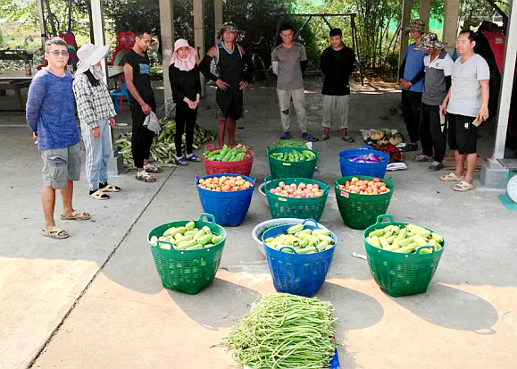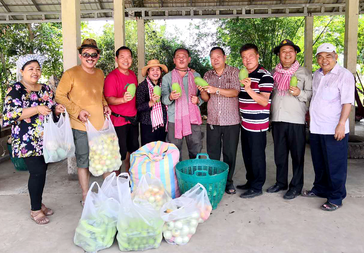 3月21日,班迭棉吉省省长和柬埔寨王家军第五军区 副司令,在波贝市市长和相关厅、局领导的陪同下到基地视察工作,看望了新冠肺炎疫情期间仍然在柬工作的工作组全体成员,并向工作组赠送了800个防疫口罩。基地果实累累的场面吸引了省长和副司令一行,工作组请他们体验采摘、分享了各种农产品。
