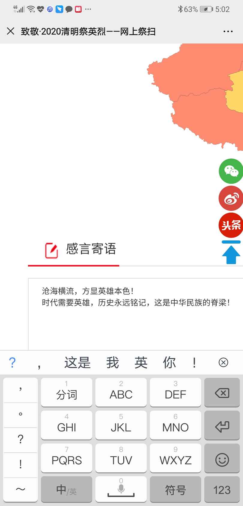通知中心“天地英雄气、千秋尚凛然。”无数革命先烈是我们民族的脊梁,是我们不断开拓前进的勇气和力量所在。在清明节来临之际,正是全国上下众志成城抗击新冠肺炎疫情的关键时期,为深入贯彻落实习近平总书记关于英烈褒扬的重要指示精神,在切实做好疫情防控同时,我院积极组织师生参加“致敬.2020清明祭英烈”网上祭扫活动,祭扫英魂,缅怀先烈,勉励全院师生继承先烈遗志,传承红色基因,激发爱国热情。