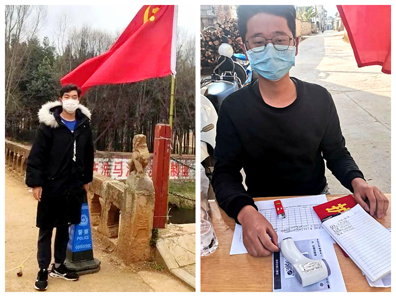 19计算机应用技术6班字绍明在云南省保山市昌宁县大田坝镇湾岗村做基层志愿者,检测、登记、劝导、疏散、环卫都要上手。他说:“作为一名学生我没有强大的能力去抵御病毒的入侵,我能做的就凭借自己的双手、头脑、知识、爱心开展各种志愿服务活动,无偿帮助那些需要帮助的人们。只有大家共同努力才能共度难关!”