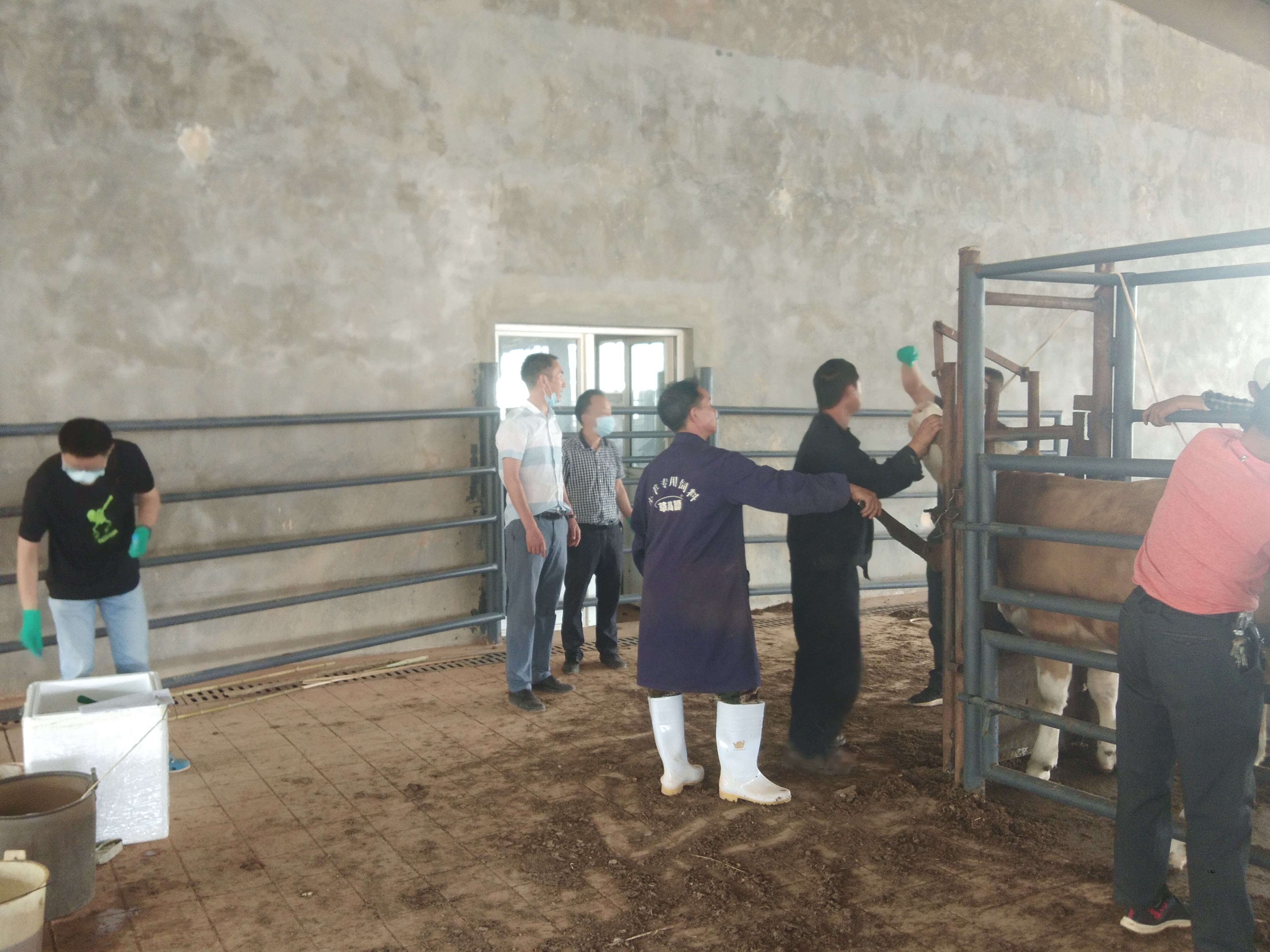 2020年5月13日,云南省动物疫病防控中心专家组到位于曲靖市马龙区的云南山地牧业科技示范园,对我院种畜繁育推广中心西门塔尔肉牛纯繁场种牛进行健康检查。省种畜畜牧推广中心副主任李春平、刘绍贵,马龙县畜牧局、旧县、马鸣两乡镇兽医站相关人员参加。