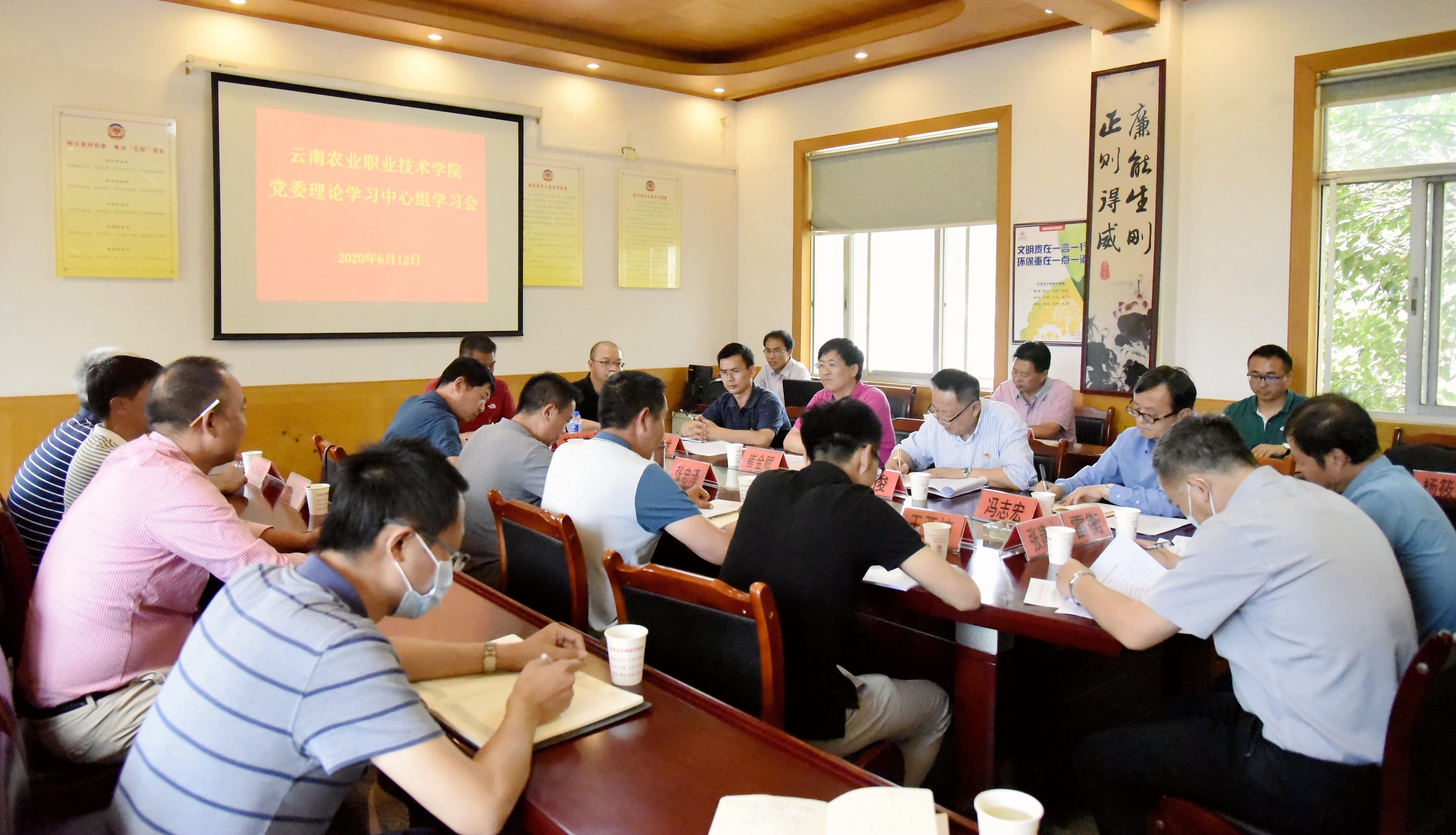 通知中心6月12日下午,我院在西翥街道办会议室举行党委理论学习中心组(扩大)2020年度第三次集中学习会,探索校地融合,服务乡村振兴的发展路径。这是学院党委进一步完善理论学习中心组学习制度,持续提升学习效果的重要探索。本次学习会在实地调研西翥街道脱贫攻坚和农业产业发展的基础上,认真学习习近平总书记关于扶贫工作的重要论述,深刻领会决战决胜脱贫攻坚的重要意义和目标任务,结合《农业农村部办公厅关于做好2020年高素质农民培育工作的通知》有关要求,坚定信心,顽强奋斗,推动学院主动融入脱贫攻坚和乡村振兴,为夺取脱贫攻坚战全面胜利做出积极贡献。学院党委理论学习中心组成员参加学习;非中共党员校领导,西翥街道办党工委书记张忠泽同志及其领导班子成员、部分社区书记以及云农职•慧农时邦产教联盟负责人王亚楠同志列席学习会。